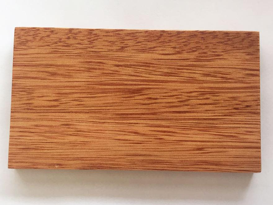 常綠喬木,高約40m,直徑0.6~1.5m,原木常見(jiàn)脆心。材表常留有淡黃色樹(shù)液。本屬約有100種,分布于東南亞、南太平洋、馬達(dá)加斯加和南美洲等地區(qū),主要從馬來(lái)西亞、巴布亞新幾內(nèi)亞、印尼進(jìn)口,量大。 樹(shù)皮:很厚,有時(shí)達(dá)4cm,不易剝離。外皮較硬;較厚;灰白色至灰褐色;具縱裂溝,較深較寬;易薄片狀剝落。內(nèi)皮紅棕色;韌皮纖維發(fā)達(dá);石細(xì)胞發(fā)達(dá);層狀排列。 橫截面:心邊材區(qū)別明顯。心材玫瑰紅色至紅褐色,具有褐色細(xì)條紋。邊材淺黃或淺灰褐色,窄。生長(zhǎng)輪略可見(jiàn)。 宏觀構(gòu)造:散孔材。管孔肉眼下明顯;略少,單管孔;呈斜列或徑列;含深色樹(shù)膠。軸向薄壁組織放大鏡下明顯,離管帶狀,斷續(xù)而稀疏,不均勻。木射線放大鏡下略見(jiàn),略密,甚窄。 木材材性光澤強(qiáng);花紋美麗。紋理交錯(cuò);導(dǎo)管粗獷,做產(chǎn)品立體感整體效果較強(qiáng),穩(wěn)定性中等;握釘力強(qiáng),結(jié)構(gòu)粗;重量和強(qiáng)度中等;硬度略高;干縮大。鋸、刨容易,易起毛和撕裂;油漆、拋光和膠黏性能良好;略難釘釘;略耐腐。干燥宜慢,易開(kāi)裂、翹曲。 木材用途一般適用于門窗、家具、工藝品、木門等。